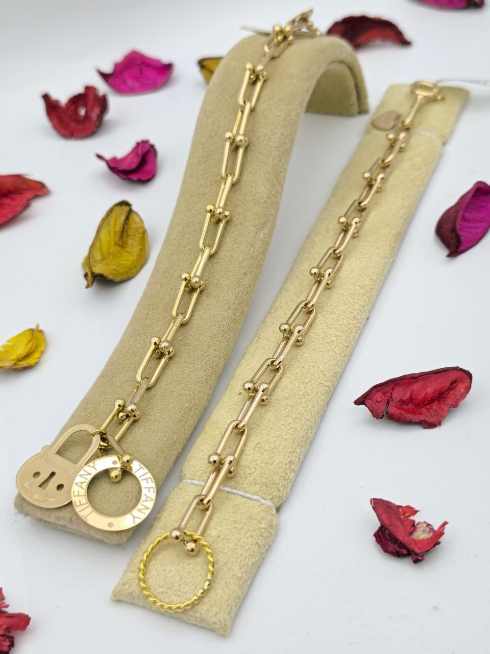 دستبند زنجیری ( تیفانی ) وزن حدودی 10 گرم قیمت : وزن طلا با 15 درصد در طلای روز