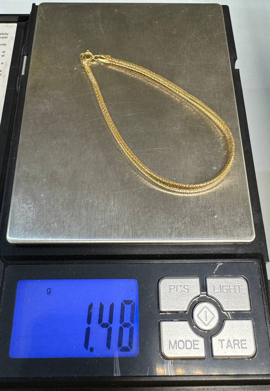 دستبند ( کشی ) وزن : 1.48 اجرت : 15% کارمزد : 7% در قیمت طلای روز